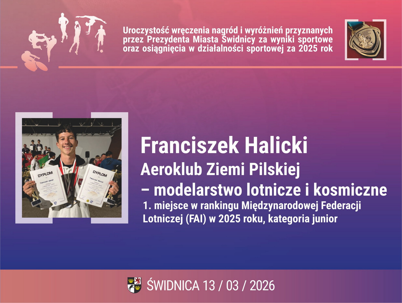 13. Franciszek Halicki – Aeroklub Ziemi Pilskiej – modelarstwo lotnicze i kosmiczne. 1. miejsce w rankingu Międzynarodowej Federacji Lotniczej (FAI) w 2025 roku, kategoria junior