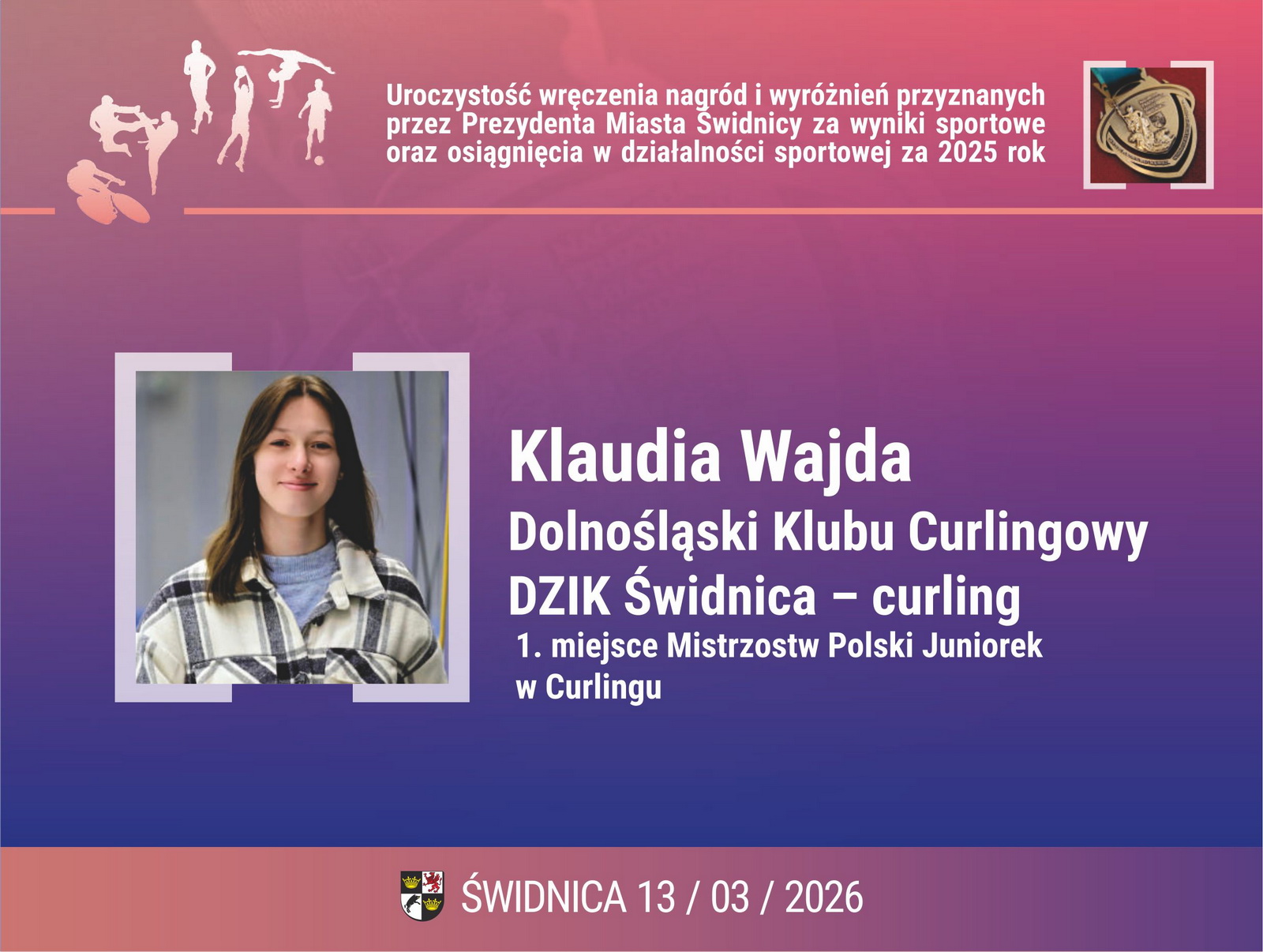 17. Klaudia Wajda – Dolnośląski Klubu Curlingowy DZIK Świdnica – curling. 1. miejsce Mistrzostw Polski Juniorek w Curlingu