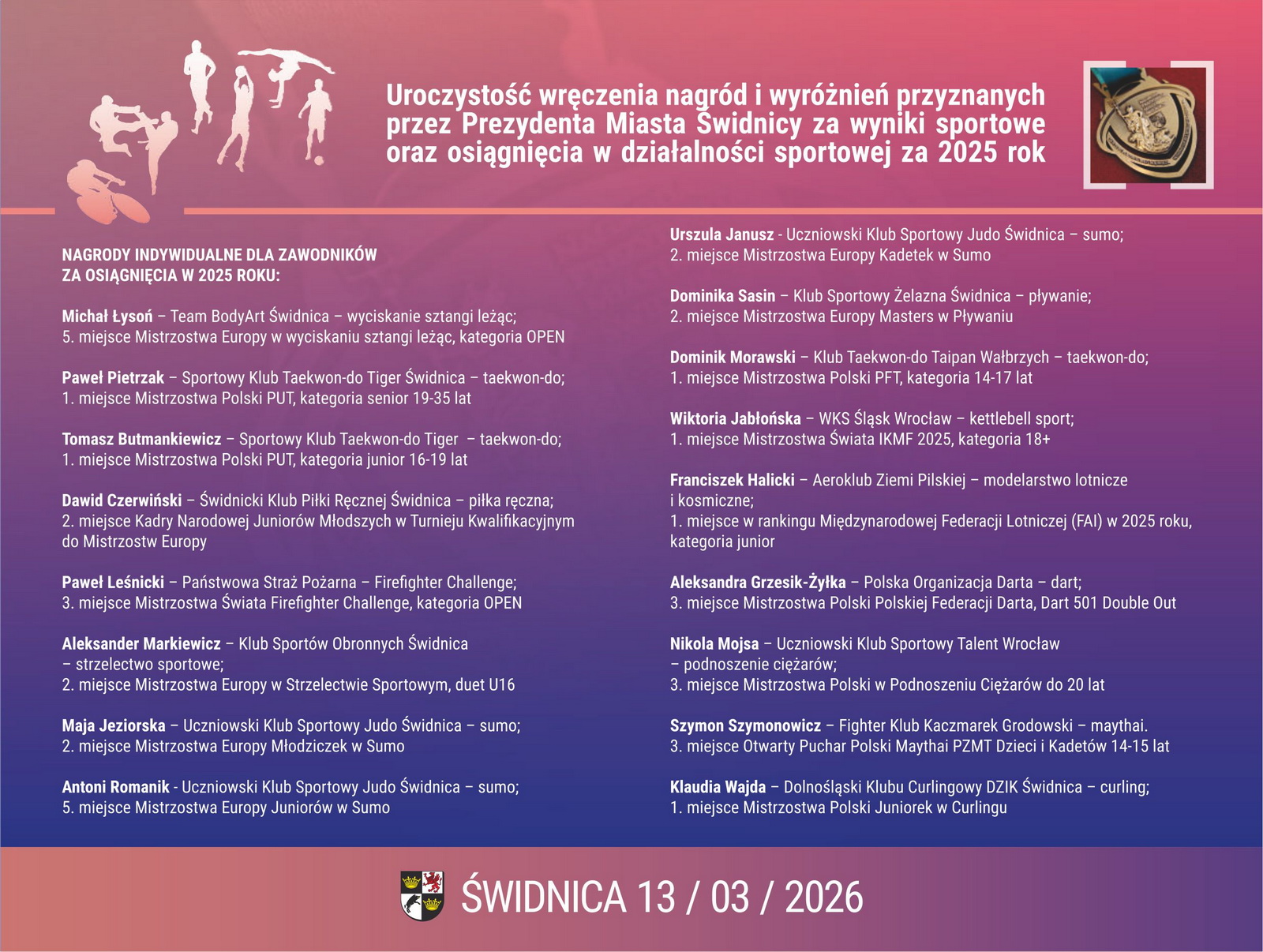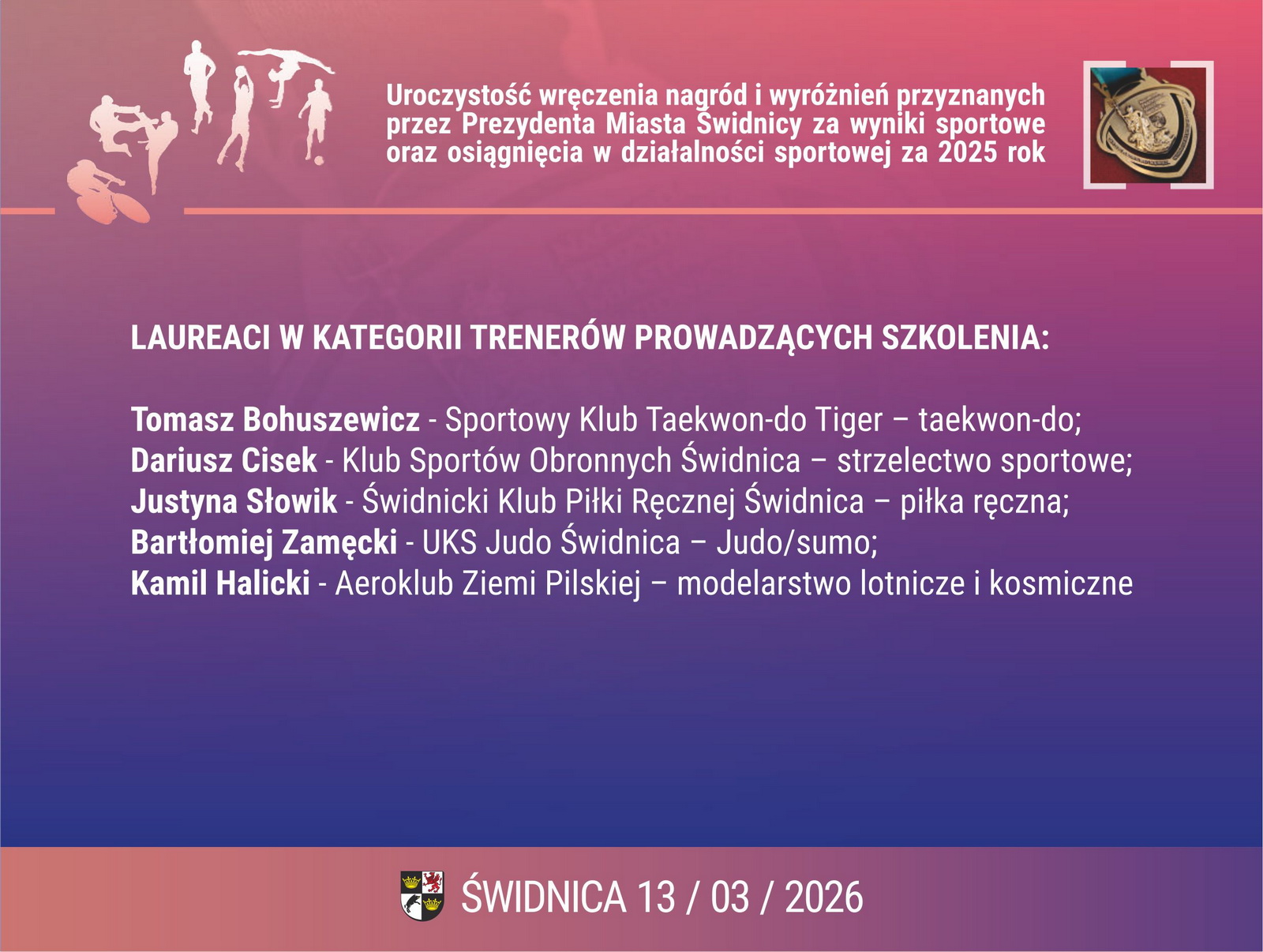 Uroczysta Gala Świdnickiego Sportu była okazją do wręczenia nagród Prezydent Miasta Świdnica za osiągnięcia w 2025 roku w dziedzinie sportu. Była również wyjątkową okazją do wręczenia wyjątkowych wyróżnień.