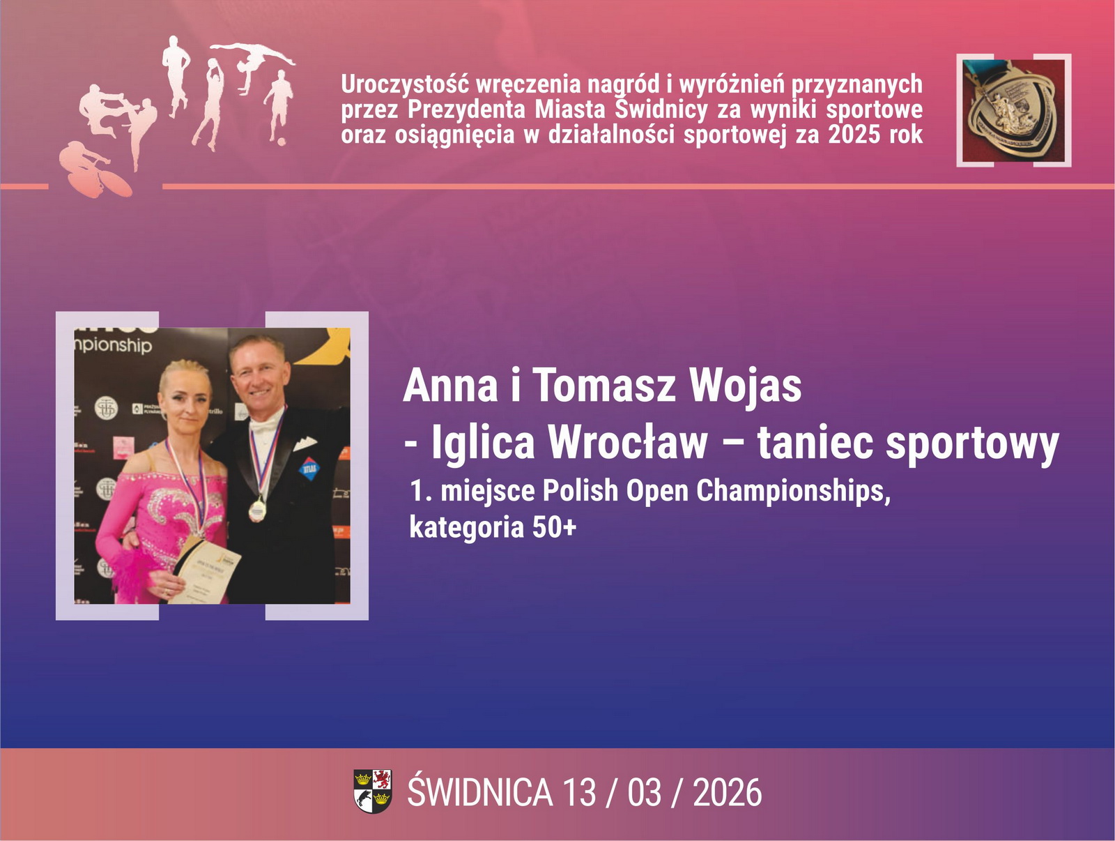 2. Pani Anna Wojas oraz Tomasza Wojas – Iglica Wrocław – taniec sportowy. 1. miejsce Polish Open Championships, kategoria 50+
