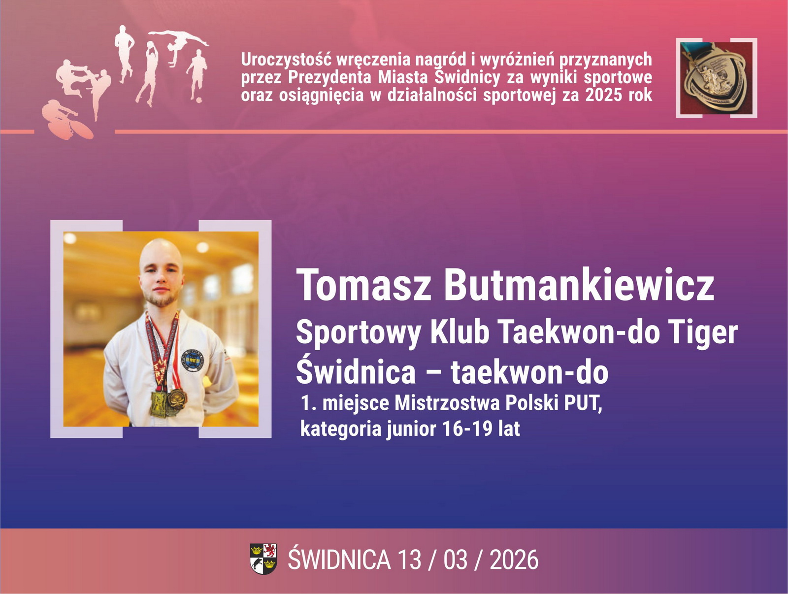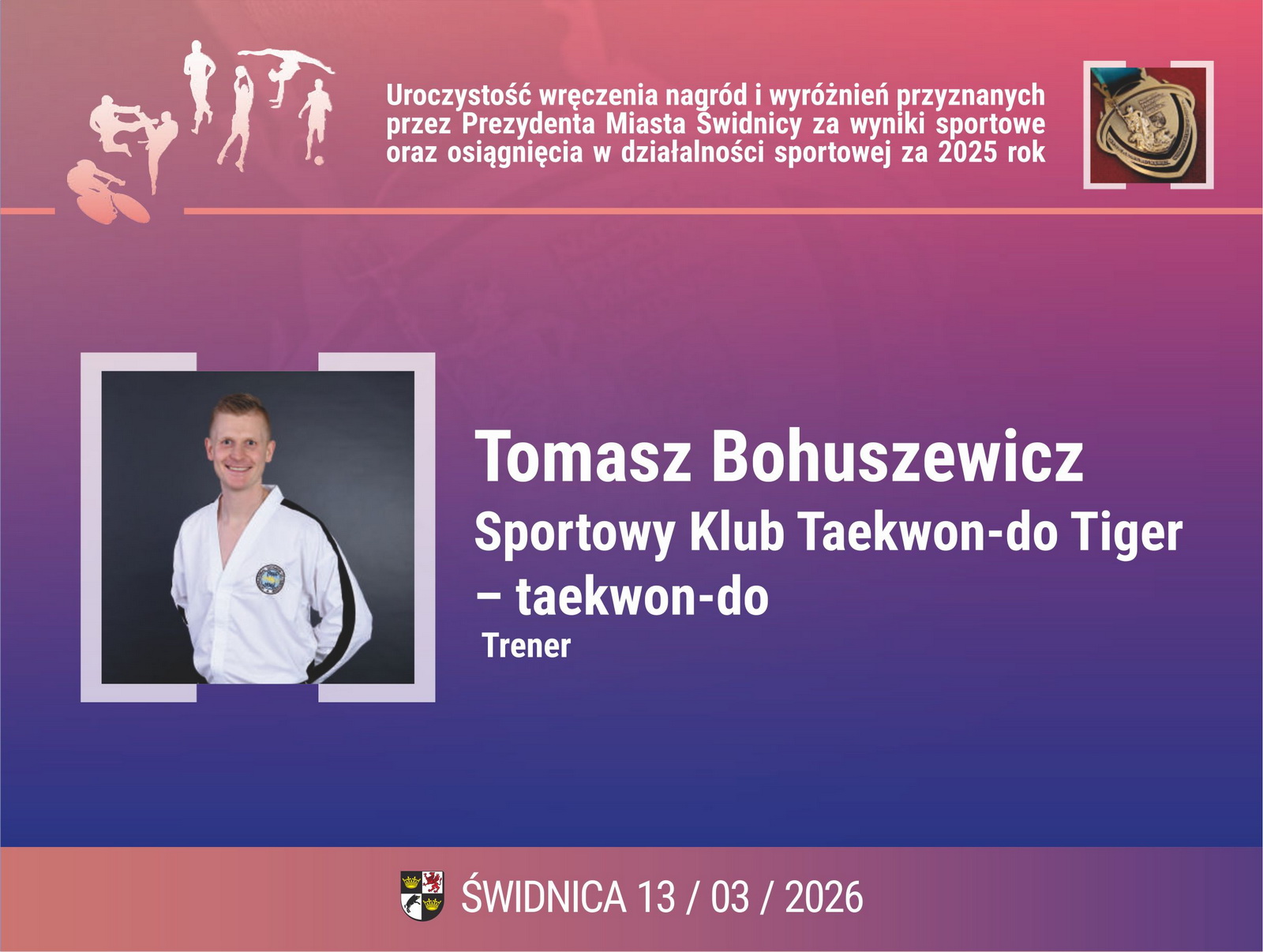 1. Tomasz Bohuszewicz – Sportowy Klub Taekwon-do Tiger – taekwon-do;