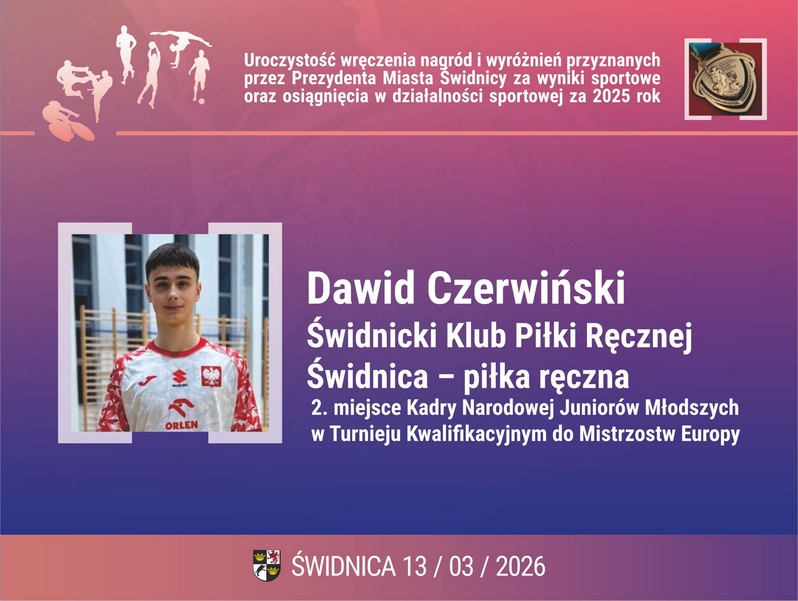 4. Dawid Czerwiński – Świdnicki Klub Piłki Ręcznej Świdnica – piłka ręczna. 2. miejsce Kadry Narodowej Juniorów Młodszych w Turnieju Kwalifikacyjnym do Mistrzostw Europy