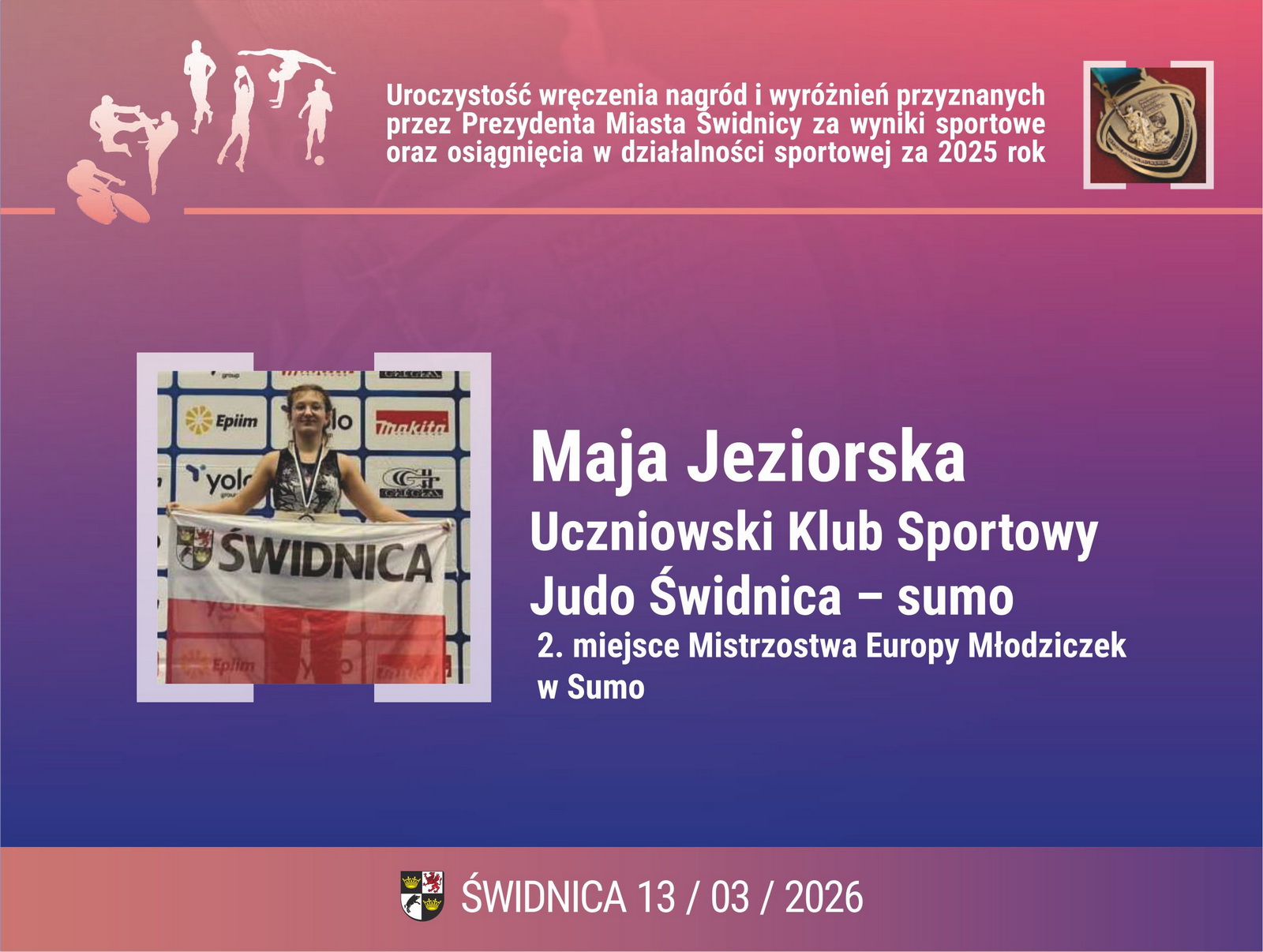 7. Maja Jeziorska – Uczniowski Klub Sportowy Judo Świdnica – sumo. 2. miejsce Mistrzostwa Europy Młodziczek w Sumo