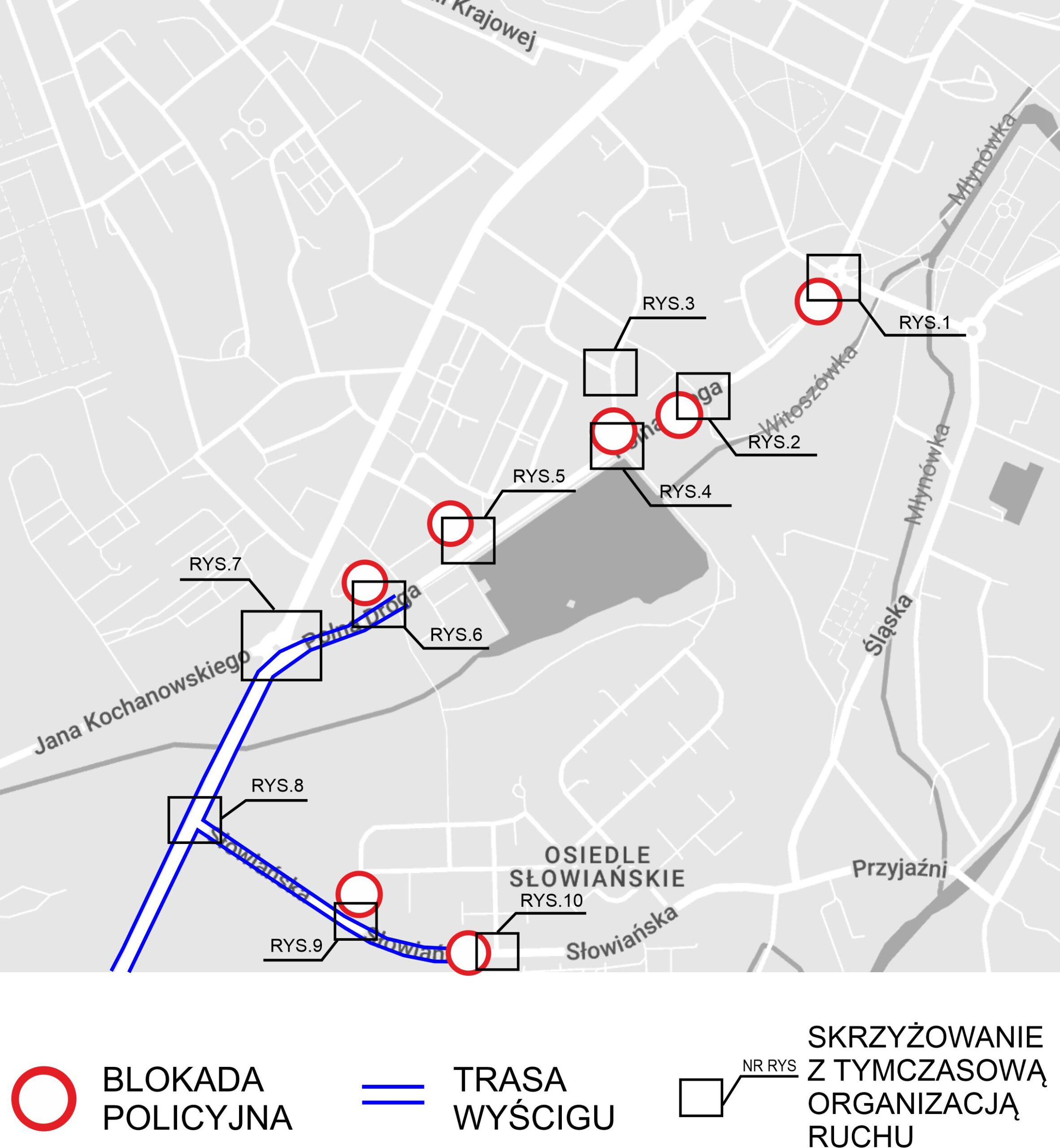 Rondo Ireny Sendlerowej pozostanie przejezdne. Ruchem będą kierować funkcjonariusze Policji. Na czas trwania etapu obowiązywać będzie tymczasowa organizacja ruchu – prosimy o zwracanie uwagi na oznakowanie.